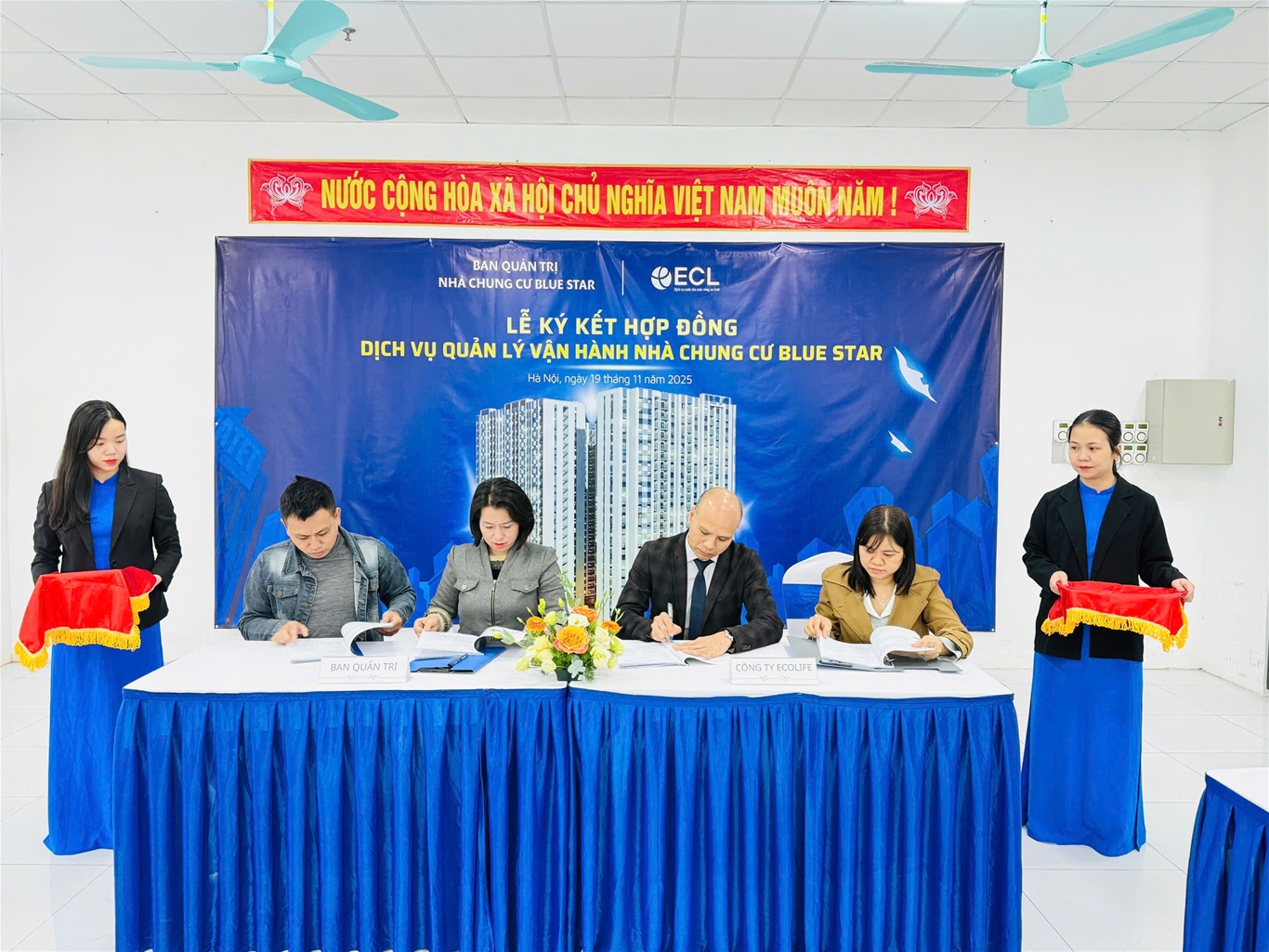 Ngày 19/11/2025, Ban quản trị nhà chung cư Blue Star và Công ty Cổ phần Quản lý Bất động sản Ecolife đã ký hợp đồng dịch vụ Quản lý vận hành Nhà Chung cư Blue Star với thời hạn 12 tháng.